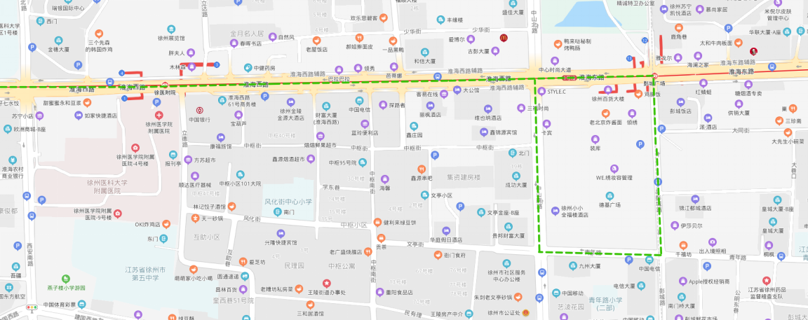 (2)??空军c:夾河高中(大彭鎮(zhèn))、大彭醫(yī)院、霸王山水泥廠、十八屯、徐州誠遠眼耳鼻喉醫(yī)院、雨潤新城、火花農(nóng)貿(mào)市場、生物工程學(xué)院北門、奎山散熱器公司、徐醫(yī)附院華豐分院、出入境辦理中心、小康人家、段南新村、段莊、礦務(wù)局、工人醫(yī)院、市二院、浦發(fā)銀行、彭城飯店、中央百大(單邊)。