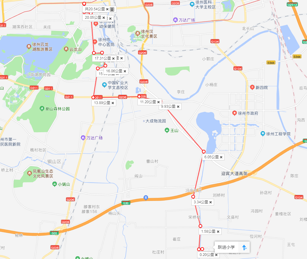 (1)線路走向:204縣道-溝棠路-周定路-迎賓快速路-御景路-三環(huán)南路-解放南路-解放路-建國東路-彭城路。