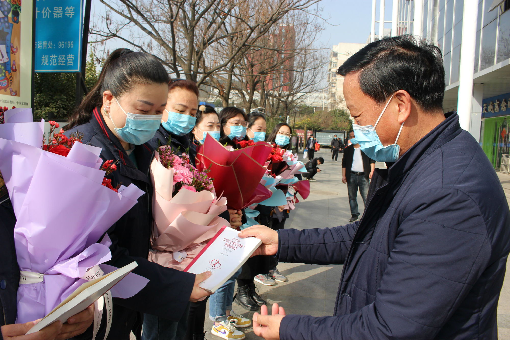 接著,袁夫松為女職工代表送去法律書(shū)籍《江蘇省女職工勞動(dòng)保護(hù)特別規(guī)定》以及節(jié)日紀(jì)念品。據(jù)悉,此次三八節(jié)活動(dòng),還包含“情系女職工 法在你身邊”女工普法等系列活動(dòng),集團(tuán)通過(guò)微信公眾號(hào)“今日學(xué)法欄目”對(duì)《江蘇省女職工勞動(dòng)保護(hù)特別規(guī)定》進(jìn)行宣傳解讀,工會(huì)還向女職工發(fā)放《工會(huì)女職工工作百問(wèn)百答》等書(shū)籍共計(jì)200本,組織女職工座談會(huì)以及心理健康講座等。
