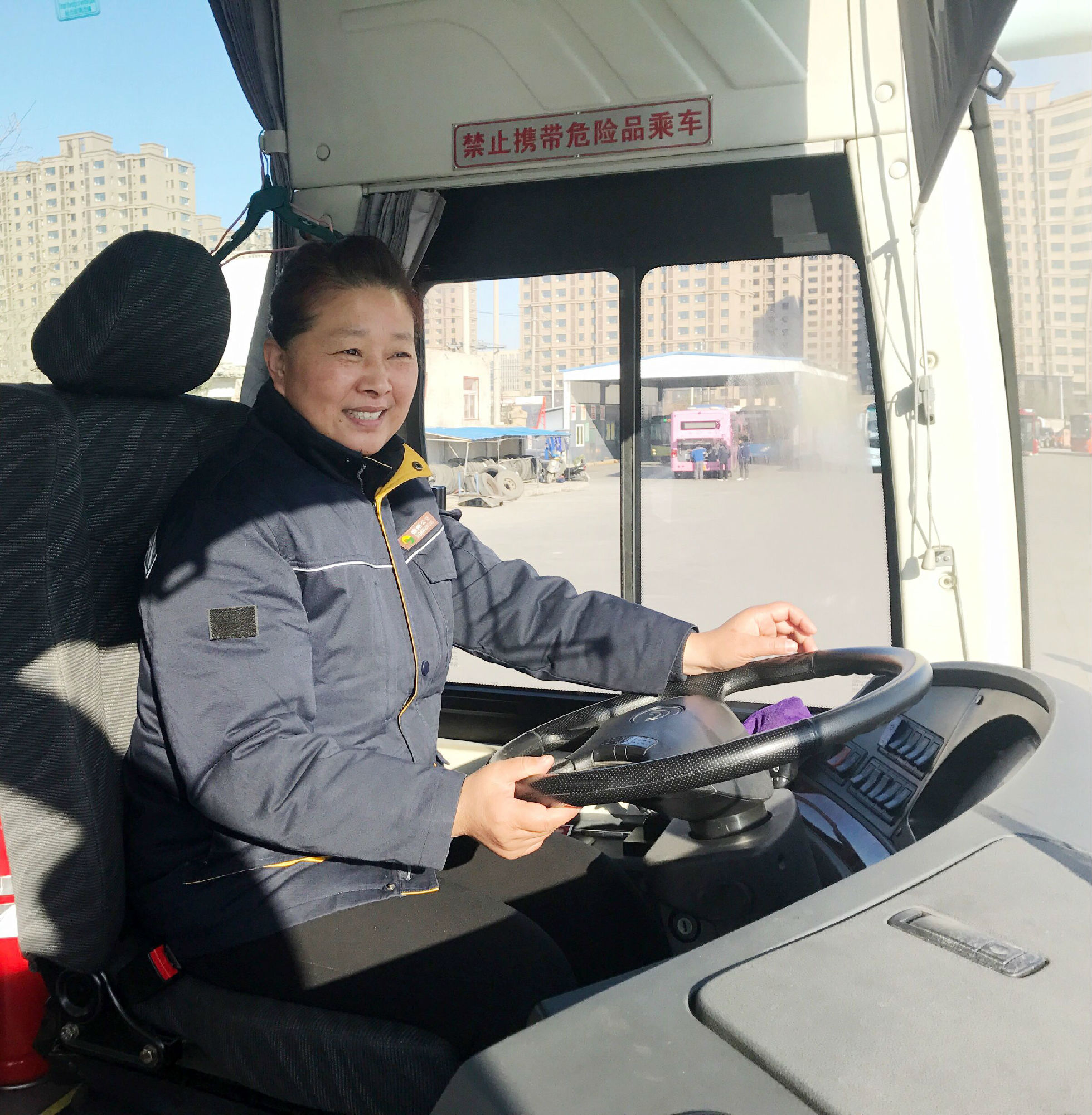 清晨,太陽還在地平線懶洋洋地徘徊,一個(gè)嬌小的身影已邁著健步走向她形同家般的公交車上。伴著學(xué)生們的歡聲笑語,她準(zhǔn)時(shí)把他們送到校門口。她就是新城包車隊(duì)的駕駛員房穎,大家親切地稱她房姐。