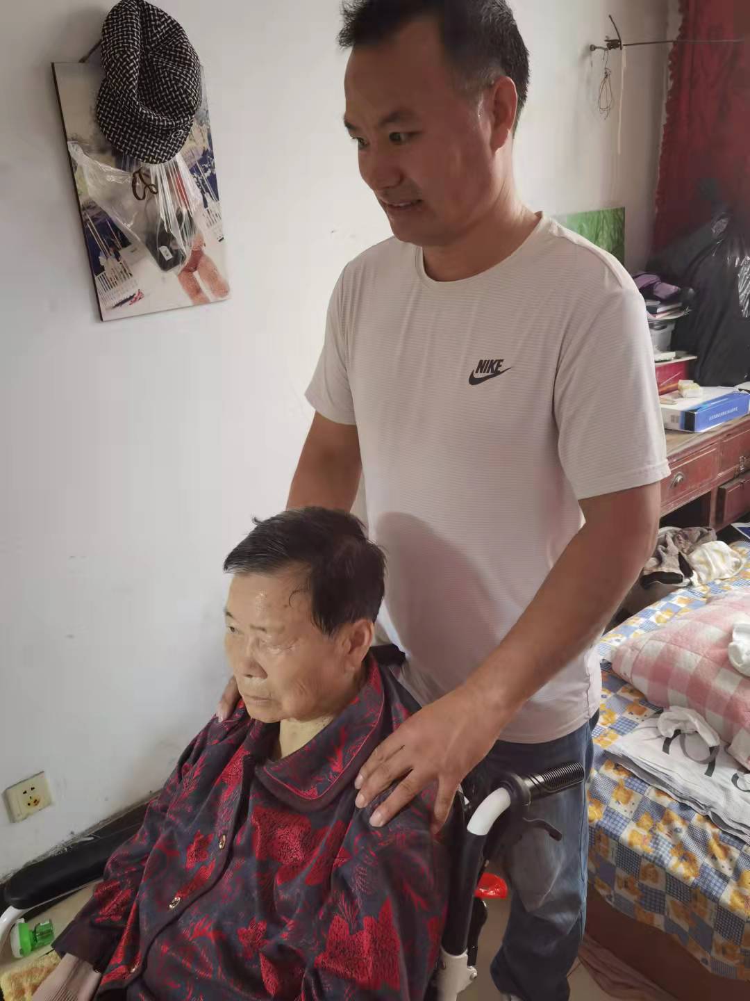 為了不讓老人感到孤獨(dú),只要有時間,他就會推著老人出去走走,和老鄰居們聊聊天。鄰居們說:“這些年,新建照顧老人的點(diǎn)點(diǎn)滴滴我們都看在眼里,這樣耐心照顧毫無血緣關(guān)系的老人,不是誰都能做到的,好人啊。”