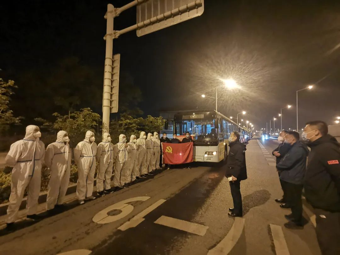4月22日1:10分集結(jié)完畢。出行前,交控公交集團(tuán)黨委書記、董事長高守江來到隊員們中間,滿懷激情地激勵大家:交控公交要承擔(dān)起國企責(zé)任,堅決服從全市疫情大局,全力支持睢寧疫情防控工作。大家要團(tuán)結(jié)一心,到崗以后要服從大局、聽從指揮、遵守紀(jì)律、忠于職守,要切實加強(qiáng)安全防護(hù)。大家處在疫情防控的最前沿、第一線,既要發(fā)揚越是艱險越向前的斗爭精神,也要強(qiáng)化自我防護(hù)意識,嚴(yán)格按規(guī)程開展工作,全體公交人都期盼你們早日凱旋歸來、平安歸來。