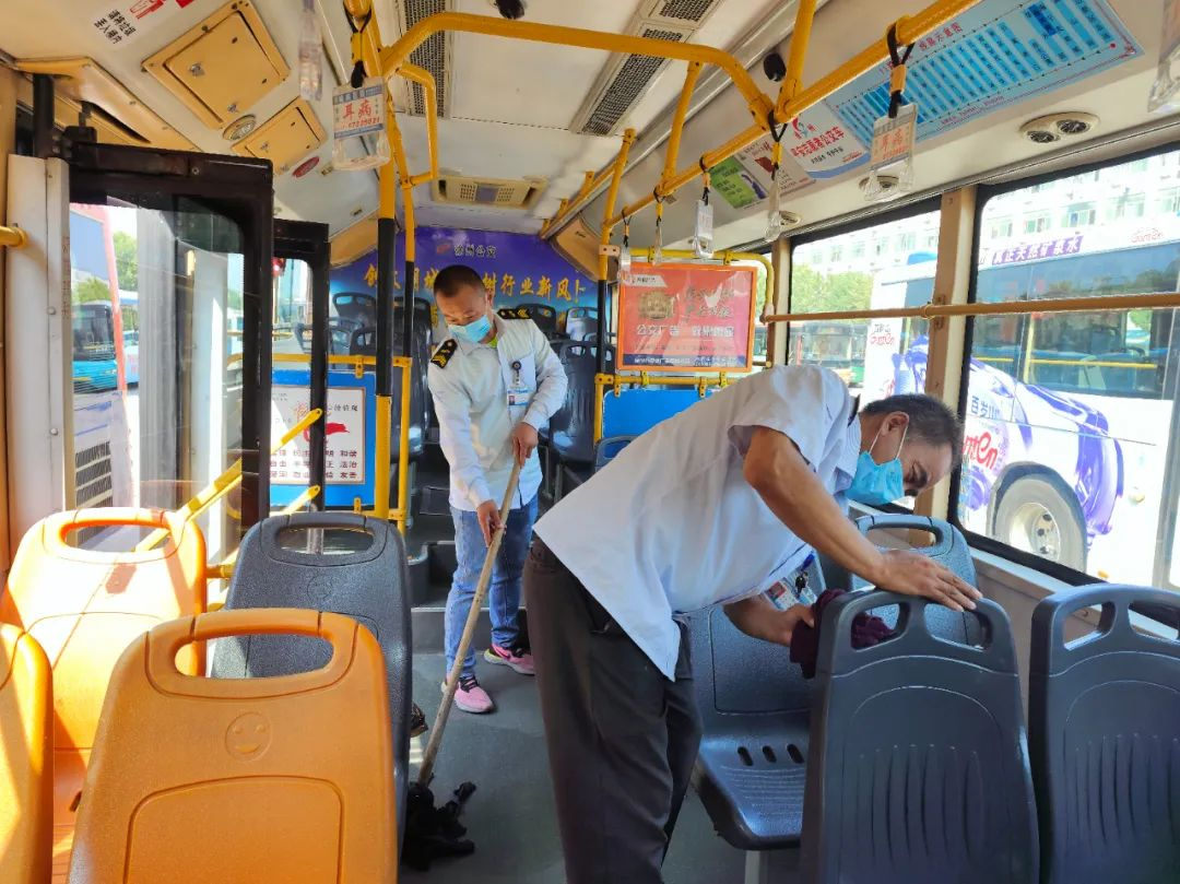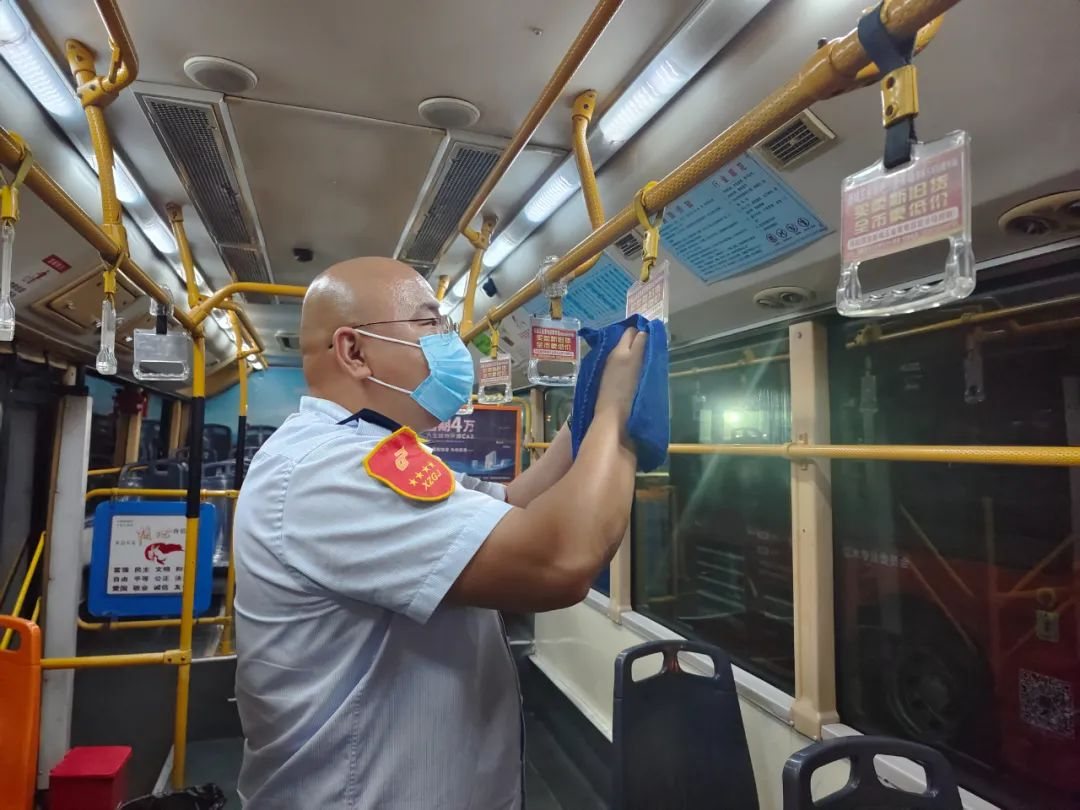 氣溫逐漸上升,陸續(xù)到了中午交接班時(shí)間,上、下午班駕駛員一起打掃車(chē)輛衛(wèi)生,并為車(chē)輛消毒,地板、扶手、座椅,不放過(guò)任何一處死角,只為給市民乘客提供更安全、舒適的乘車(chē)環(huán)境。