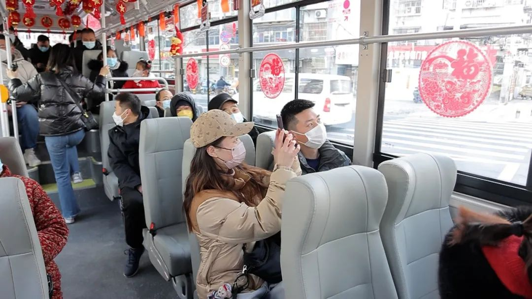 為讓乘客感受濃濃的過年氛圍,徐州公交集團(tuán)京徐巴士公司駕駛員劉艷軍精心打造了年味主題車廂。鮮艷的中國結(jié)喜慶亮麗,扶手欄桿處放置兔子玩偶,車窗上貼滿了福字烘托出節(jié)日吉祥氛圍。“非常喜歡車廂的裝飾,車上紅紅火火的,氣氛真好。”正在乘車的張女士說道,車上乘客也紛紛拿起手機(jī)拍照打卡。