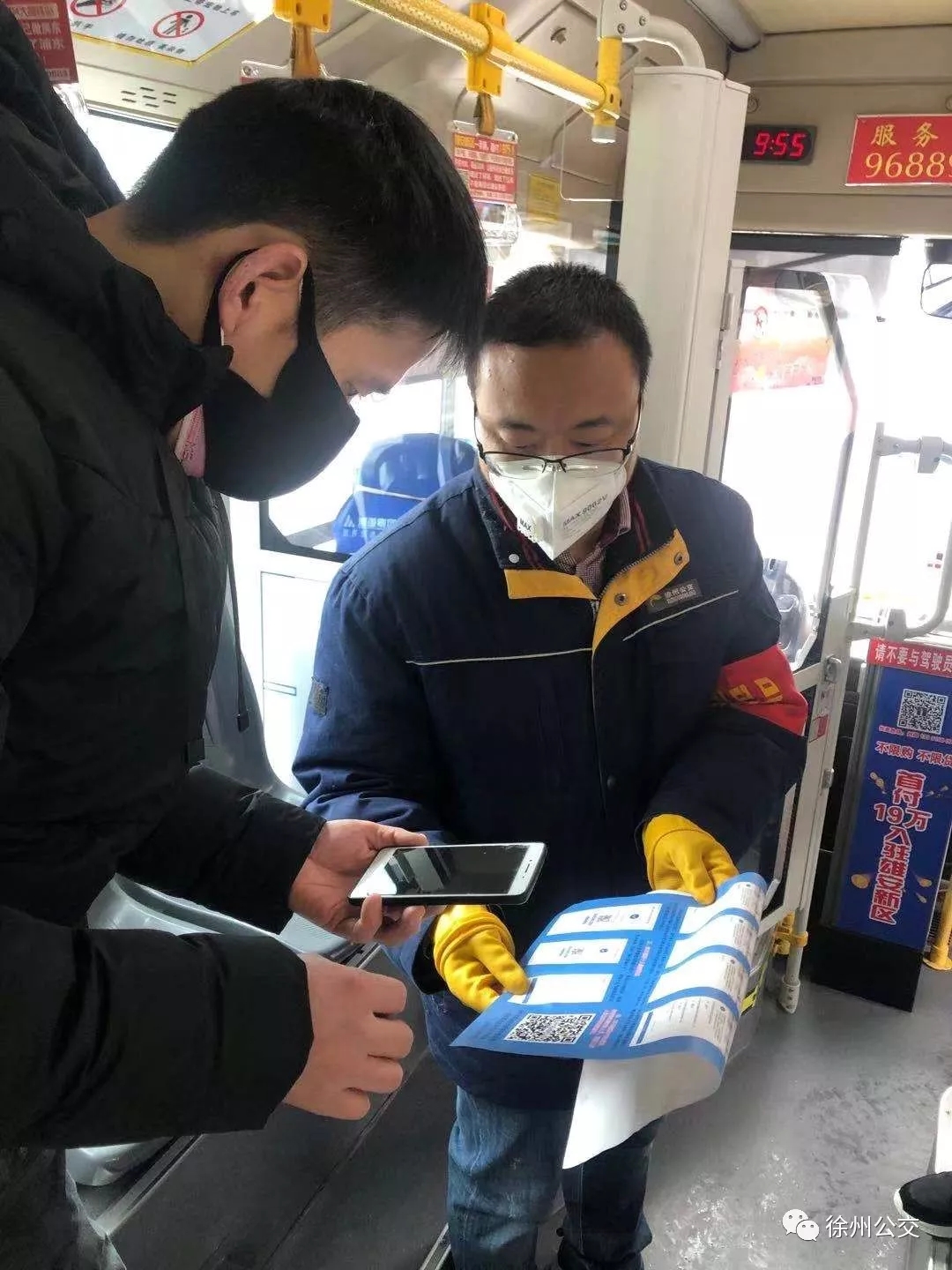 2月12日早上5點,各級管理人員分組到達各始發(fā)站進行早發(fā)車,測量復(fù)工人員體溫,車輛消毒,叮囑駕駛員嚴格按照集團要求行駛,注意行車安全,并跟隨首班車,查看線路營運情況。發(fā)車前,駕駛員佩戴好口罩、護目鏡,對車輛進行消毒,重點對踏板、地板、拉手、投幣口進行全覆蓋消殺,并打開車門、車窗進行通風換氣,跟車人員準備好體溫劑,做好乘客的體溫測試工作。在高鐵上客站、淮西客運站、徐州站等地,管理人員協(xié)助駕駛員監(jiān)督乘客是否佩戴口罩,進行體溫測試;引導(dǎo)市民掃碼乘車進行實名登記;主動宣傳禁止攜帶易燃易爆物品以及活禽上車;疏導(dǎo)乘客“錯位就坐”,叮囑乘客保持安全乘車距離。運營期間,所以公交車全程打開車窗和頂部天窗,每臺車的前車門處標注滿載率,滿員以后不再接納新乘客上車,并嚴格執(zhí)行“一趟一清掃”“一趟一消毒”制度,做好消毒記錄,做到規(guī)范防控。